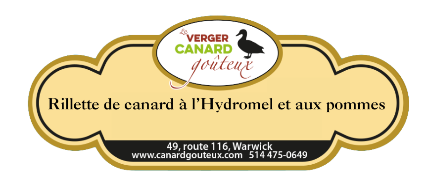 Cette délicieuse rillette est fait de 100% canard (sans porc), et de l'Hydromel de la Miellerie King, un vin de miel unique et savoureux. On perçoit les arômes floraux du miel et elle contient des petits morceaux de pommes.